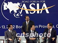 圖:中國經(jīng)濟(jì)高官在博鰲亞洲論壇上談入世 2002年04月12日 19:37 ![]() 博鰲亞洲論壇首屆年會十二下午舉行議題討論會,中國高官人民銀行行長戴相龍、信息產(chǎn)業(yè)部長吳基傳、國家稅務(wù)總局局長金人慶、中國保險監(jiān)督管理委員會主席馮曉增(由右至左)分別就各自相關(guān)行業(yè)與中國入世關(guān)系發(fā)表演講。中新社記者 滿會喬 攝