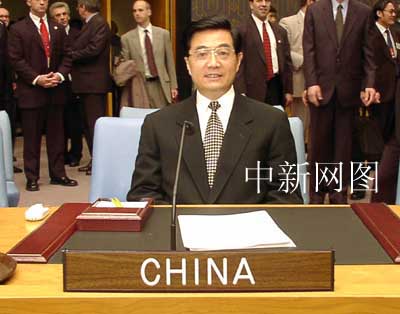胡錦濤會(huì)見安南 雙方就中東等問題交換看法 2002年04月30日 13:44 ![]() 胡錦濤聯(lián)合國會(huì)晤安南。中新社記者 陳建 攝 ![]() 胡錦濤在聯(lián)合國安理會(huì)做“五秒鐘代表”。中新社記者 陳建 攝 ![]() 胡錦濤在聯(lián)合國副秘書長陳健、中國