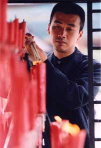 拍攝花絮:柳云龍靈山大佛前祈禱(多圖) 2002年07月11日 15:50 ![]() 現(xiàn)場圖片 ![]() 無錫有座靈山,靈山大佛為天下第一高立佛,高達(dá)88米。相傳佛陀涅槃后千年,玄奘大弟子窺基帶著佛祖遺物——菩提心燈至靈山傳法,遂神燈成為靈山鎮(zhèn)山之寶。因此緣,再四百年,佛祖百丈金身終現(xiàn)靈山山巔。我們的景就選在這個空靈而神奇的地方。 全組清早五時從駐地出發(fā),沐著淡淡的薄霧前行,偶爾有幾簇青蔥的仙人樹映入眼簾,樹上花紅似火。事先沒有任何預(yù)兆,天下突然起了大雨,我們是在雨中進(jìn)入祥符寺的,鐘六一的重頭戲?qū)⒃谶@里完成。由于雨太猛烈,劇組無法工作,所有的人在殿前靜靜地候著。香燭忽明忽暗,山門口的佛背身而立,呢喃的頌經(jīng)聲遠(yuǎn)遠(yuǎn)傳來,青煙裊裊濾去塵世的躁動,勾勒歲月的嬗變。雨稍小了一點(diǎn),劇組開始拍攝,柳云龍飾演的黑社會老大鐘六一是個身世復(fù)雜經(jīng)歷奇異終日徘徊在矛盾與痛苦中的人物,當(dāng)他曾經(jīng)輝煌、磨難、罪惡直至眾叛親離的一生走到盡頭的時候,鐘六一孤獨(dú)地找尋寺廟,似乎這里有種力量在召喚著他。柳云龍換上一身墨色的行頭,支著黑傘,出現(xiàn)在鏡頭前,蒼白的臉頰裸露青茬,和著雨珠同冰冷。他徑直走入佛殿,跪拜佛前,將臉深埋蒲團(tuán),久久未起。因?yàn)橛甑匿罏r,因?yàn)榱讫埖膶W,大家一時竟分不出是戲里還是戲外。一名僧者掠過鐘六一,在他身邊低語了一番,鐘六一呆滯的雙眼突然跳動了一下,福田寬廣,也許這個或無情或深情的焦灼靈魂在此刻頓悟——往事隳飛煙滅,一切皆成夢魘。 大家渾身濕透,有雨水更有汗水。如果說影視是切換的張力的藝術(shù),那么,跟隨角色的足跡,演員循著創(chuàng)作進(jìn)程可以發(fā)掘存在的原本,表達(dá)的支點(diǎn)。進(jìn)入拍攝后期的柳云龍極大地沉浸在人物的狀態(tài)里,桀驁不馴,獨(dú)來獨(dú)往,演員的幸福與痛苦于第一自我和第二自我的交替中穿插著,這是創(chuàng)造賦予創(chuàng)造者的生命。 柳云龍在鐘六一的起落中脫胎換骨,完成著作為演員的使命。