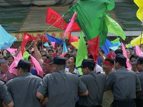 今天上午,福建省體育中心場內(nèi)出現(xiàn)了數(shù)百名“球迷”,在一片“打倒黑哨”的口號聲,“綠茵場”內(nèi)亂成一團(tuán),摔礦泉水瓶,砸酒瓶,甚至趁機(jī)放火,一時“狼煙四起”。隨著“事態(tài)”的發(fā)展,福建省公安機(jī)關(guān)和武警部隊的各主要警種陸續(xù)聞訊趕來。