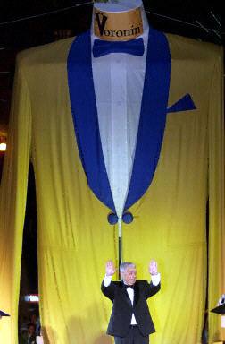 9月8日,烏克蘭時裝設(shè)計師展示世界上最大號的男士晚禮服。據(jù)悉,這件高10米晚禮服將被載入世界吉尼斯大全。
