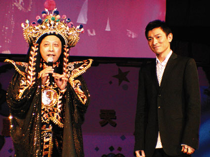 中新網(wǎng)9月20日電 九月二十七日是劉德華四十一歲生日,日前華仔與歌迷會(huì)歌迷舉行生日派對預(yù)祝,吳君如、林建岳等都有到賀。其中華仔的師父變臉大師彭登懷更專誠來港出席生日會(huì),給華仔一個(gè)意外驚喜。