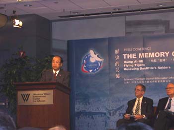 中國(guó)國(guó)務(wù)院新聞辦主任趙啟正主持了今晚的開幕式。他說(shuō):今天我們共同回憶當(dāng)年中美兩國(guó)在反法西斯戰(zhàn)爭(zhēng)中極其壯烈的歷史和兩國(guó)人民結(jié)下的深厚友誼。有時(shí)歷史會(huì)沾滿灰塵,需要去揩拭,讓它重新發(fā)光。當(dāng)年故事的主人公年事已高,我希望把這段歷史告訴年輕人,這是我們舉辦這次活動(dòng)的目的。