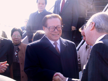 組圖:江澤民主席飛抵芝加哥開始訪問美國