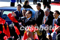 江澤民主席應(yīng)布什總統(tǒng)邀請訪問美國,二十二日抵達(dá)芝加哥奧黑爾機場,向前來迎接的各界人士揮手致意。作者:王瑤