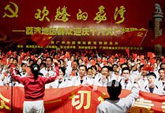 六日晚,廣州荔灣區(qū)舉行了一個(gè)大型的群眾迎“十六大”廣場(chǎng)歌會(huì),三千多位市民和部隊(duì)官兵歡聚一堂大展歌喉,表達(dá)了對(duì)偉大祖國(guó)的熱愛(ài),對(duì)即將召開(kāi)的“十六大”的期盼之情。作者:梁永強(qiáng)