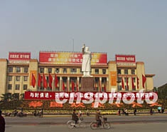 四川省會成都盛裝喜慶中共“十六大”召開,鮮花簇擁在天府廣場毛澤東像前。作者:肖龍聯(lián)