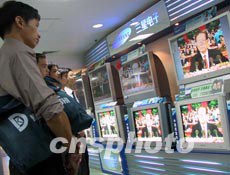 中共十六大八日在北京隆重召開,福州一家商場內(nèi)聚集了眾多觀看開幕式電視直播的市民。作者:劉可耕