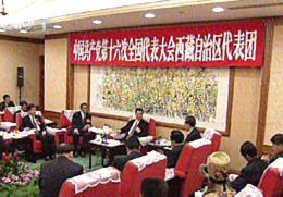 中新社北京十一月八日電 胡錦濤今天下午在西藏代表團(tuán)討論時(shí)指出,十六大報(bào)告是我們黨在新世紀(jì)新階段的政治宣言,是全面建設(shè)小康社會、加快推進(jìn)社會主義現(xiàn)代化的行動(dòng)指南,是一篇馬克思主義的綱領(lǐng)性文獻(xiàn)。