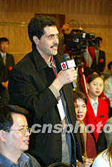 卡塔爾半島電視臺記者在新聞發(fā)布會上提問 毛建軍 攝