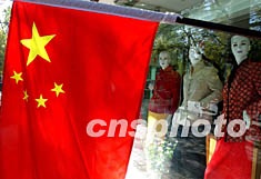 圖:京城街頭的國旗與模特