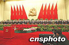 組圖:中共十六大在北京人民大會堂勝利閉幕