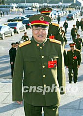 解放軍代表隗福臨步入會(huì)場(chǎng)時(shí)受到媒體關(guān)注。