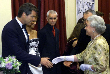 18日晚“007”新片《明日再會(huì)》首映式在倫敦皇家阿爾伯特禮堂隆重舉行。皮爾斯·布魯斯南、邦德女郎貝莉·哈瑞以及前幾任邦德的扮演者都參加了此次首映式。圖為英國(guó)女王伊麗莎白二世也親臨首映式。