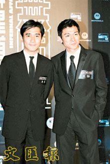 據(jù)港報報道,幾位主角劉德華﹑梁朝偉﹑陳冠希﹑黃秋生及余文樂等,都穿黑色服裝出席,而到場的唯一一位女演員蕭亞軒卻穿得十分鮮艷,形成強烈對比。眾演員先在時代廣場的露天廣場舉行祝酒儀式,為見偶像一面,現(xiàn)場早已圍滿了數(shù)百fans,而到場采訪的記者也近百人。當劉德華與梁朝偉出場時,fans不停尖叫,兩位男主角更互斗電力,偉仔單眼,華仔則瞇眼,不時做出放電的表情,令現(xiàn)場fans“喧嘩鬼叫”。