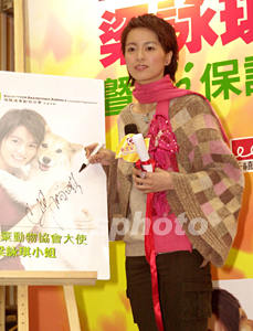 歌星梁詠琪12月24日在香港出席保護(hù)遺棄動(dòng)物協(xié)會(huì)大使委任典禮。梁詠琪在簽名儀式后,正式成為保護(hù)遺棄動(dòng)物協(xié)會(huì)大使,協(xié)助該會(huì)宣傳愛護(hù)動(dòng)物的信息。大會(huì)安排梁詠琪與及其歌迷舉行拍照會(huì),令在場(chǎng)充滿歡欣氣氛。鄧慶樂 攝