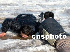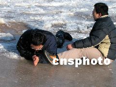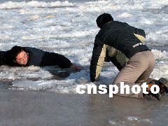 濟(jì)南一市民3日到洛口觀賞黃河封河奇觀,結(jié)果不甚落入冰窟,幸虧同伴機(jī)智向救,才僥幸生還。3日,黃河出現(xiàn)了歷史上少有的大范圍封河現(xiàn)象,許多市民聞?dòng)嵡皝?lái)目睹這一奇觀。河務(wù)部門(mén)提醒市民,雖然黃河已經(jīng)冰封,但有些河面上冰層較薄,千萬(wàn)不要在上面行走。
