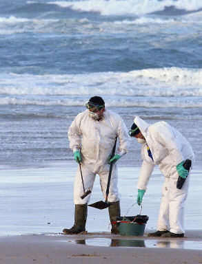 1月4日,沉沒在西班牙西北部海域的“威望”號油輪上泄漏的燃料油已經(jīng)漂到法國海岸,對當(dāng)?shù)氐穆糜螛I(yè)構(gòu)成嚴(yán)重威脅。法國有關(guān)當(dāng)局已抽調(diào)大批工人進(jìn)行清理,燃料油對海洋生態(tài)造成嚴(yán)重污染。