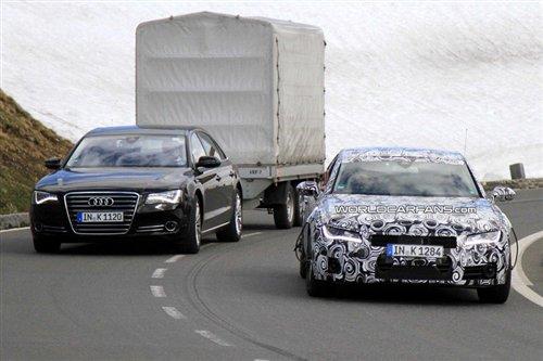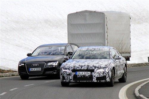近日奧迪A7和新一代A8同時出現(xiàn)在奧地利的高速公路上,雖說A7的測試已經(jīng)進(jìn)入尾聲并且即將發(fā)布,但是嚴(yán)謹(jǐn)?shù)牡聡艘琅f將這臺全新四門Coupe包裹的嚴(yán)嚴(yán)實(shí)實(shí)的,不過就算是這樣,路試車輛還是留下了一些蛛絲馬跡。