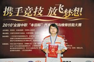 本報(bào)訊 2010年全國(guó)職業(yè)院校技能大賽日前在天津結(jié)束,重慶代表團(tuán)奪得9個(gè)一等獎(jiǎng)。我市16歲女生徐潔,在汽車維修技能比賽中技?jí)罕姸嗄猩,成為這個(gè)項(xiàng)目設(shè)立以來(lái)唯一一名奪冠的女生。