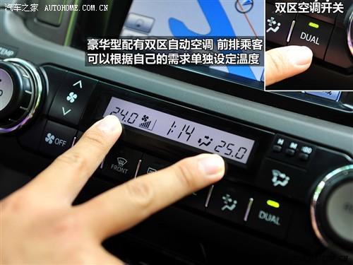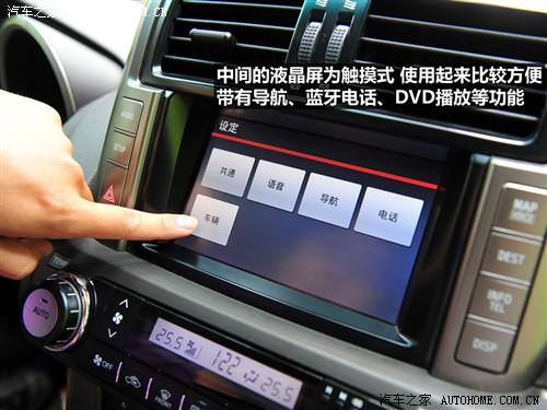 中間的液晶屏為觸摸式設(shè)計,相比那些旋鈕和搖桿操作更加直觀簡單,而其功能也很豐富,導航、藍牙電話,DVD播放等功能一應(yīng)俱全。液晶屏下方的是空調(diào)控制區(qū),普拉多采用雙區(qū)自動空調(diào),主副駕駛可以分別調(diào)節(jié)自己需要的溫度。