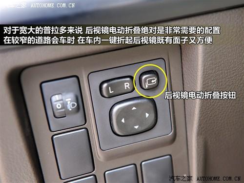 方向盤的左右兩側(cè)各有一組控制按鈕,左側(cè)為后視鏡和大燈調(diào)節(jié),值得一提的是普拉多還帶有電動后視鏡折疊功能,在狹窄路面會車時,這個功能既方便又有面子。右側(cè)的兩個按鍵和安全息息相關(guān),2檔起步可用于冰雪路面,車身穩(wěn)定系統(tǒng)則可防止車輛失控。中控下方的四驅(qū)模式切換為旋鈕式,比上代的機械把手使用更方便。