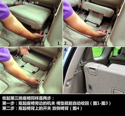 在打開第三排座椅的情況下,普拉多后備廂的儲物空間已經(jīng)近乎于零了,所以滿載7人之后,應(yīng)該趕快把第三排座椅收回去,不會?請看上圖。收起第三排座椅同樣是兩步,先摳起座椅旁邊的機(jī)關(guān),椅墊就可以自動收回了,然后再摳起椅背上的開關(guān),放倒椅背就可以恢復(fù)如初了。