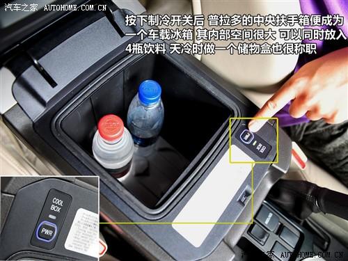 普拉多前排門板的儲物槽很寬很深,而且有單獨(dú)的杯架位置。而中間位置的兩個杯架都帶有限位機(jī)構(gòu),實(shí)用性很強(qiáng)。最大的亮點(diǎn)是前排的中央扶手箱,打開制冷開關(guān)后,它就成為一個可以容納4瓶飲料的車載冰箱啦。