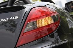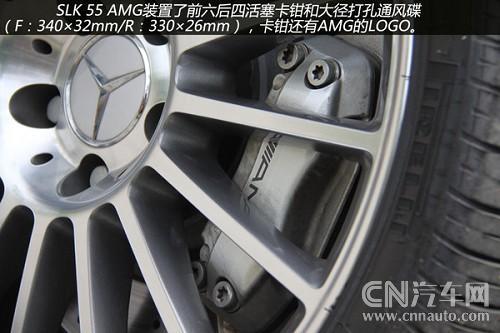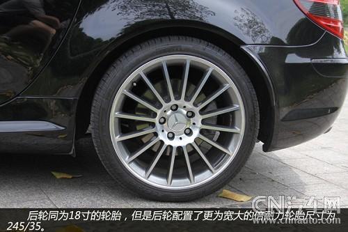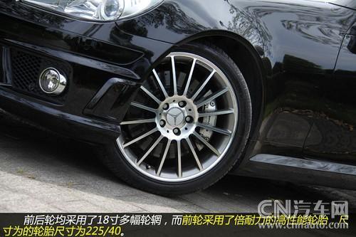 從輪轂以及剎車鉗都可以看到有AMG的標(biāo)識(shí),可以看出這些都是AMG為SLK55重新打造得。配置18吋多幅式鋁圈的SLK55AMD,配用的輪胎是前225/40、后245/35/18P-Zero紅飆。煞車因動(dòng)力和車重均較小之故,只裝置了前六后四活塞卡鉗+大徑打孔通風(fēng)碟(F:340×32mm/R:330×26mm),不過(guò)它的前碟中心盤采用了鋁合金的兩片式構(gòu)造,對(duì)于減輕簧下負(fù)重與抑制熱衰退肯定有正面的作用。