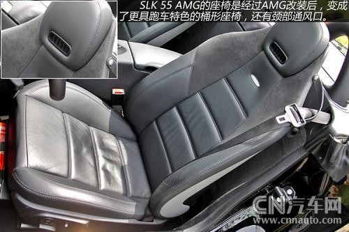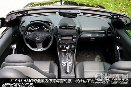 內(nèi)裝一樣非常有個(gè)人風(fēng)味的SLK55,座椅、內(nèi)門(mén)板、中央扶手均為Nappa高級(jí)真皮制成,并且有四種顏色可供選擇,AMG的座椅另外還經(jīng)過(guò)包覆與支撐性的加強(qiáng),肩部亦可追加Alcantara麂皮,藉以應(yīng)付激烈操駕的需求。此車(chē)的其它不同點(diǎn)尚包括320km/h時(shí)速表、跑車(chē)方向盤(pán)、鋁合金腳踏板、專(zhuān)用地毯、不銹鋼門(mén)檻等等,而Thermatic自動(dòng)空調(diào)、室內(nèi)照明組也列為標(biāo)準(zhǔn)配備。