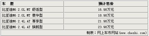 據(jù)比亞迪經(jīng)銷商處銷售人員介紹,M6將在20日正式上市,預(yù)熱宣傳活動已經(jīng)全面展開,將推出2.0L手動舒適型、豪華型和2.4L自動尊享型、旗艦型,預(yù)定價(jià)為16.98-23.98萬,前期預(yù)定該車的客戶可享受優(yōu)先提車、提車不加價(jià)等優(yōu)厚待遇。
