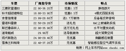 今天我們?yōu)榇蠹規(guī)砹?款SUV車型,它們的售價(jià)區(qū)間都在20-30萬左右,與部分國產(chǎn)加價(jià)SUV處于同一價(jià)格區(qū)間,姑且不說它們的市場(chǎng)有多大,單憑它們都是純進(jìn)口這一項(xiàng)就表露出明顯的優(yōu)勢(shì)。況且,它們還有一個(gè)更為有利的優(yōu)勢(shì),就是不加價(jià)!作為汽車銷量的直接影響者,我們首先就不能讓加價(jià)這種“潛規(guī)則”有生存的機(jī)會(huì)。