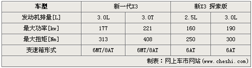 動力部分,老款X3搭載兩款自然吸氣發(fā)動機,排量分別為2.5L和3.0L。其3.0L發(fā)動機最大功率輸出達到190千瓦,最大扭矩達到300N.m。新一代X3共搭載兩款發(fā)動機,排量分別為3.0L和3.0T。3.0T發(fā)動機,新X3搭載心臟最大功率輸出達到221千瓦,最大扭矩達到408N.m。全新的動力技術(shù)帶來了更加爽快的動力感受。
