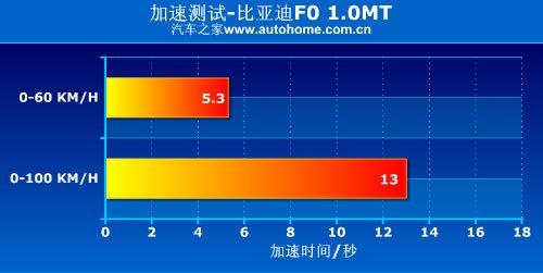 比亞迪F0搭載的是排量為1.0L的3缸全鋁發(fā)動(dòng)機(jī),最大功率為68馬力,最大扭矩90牛米,在國(guó)內(nèi)同級(jí)別的車型中,它的動(dòng)力性是比較出色的,0-100Km/h加速只用了13秒,在微型車中算是比較不錯(cuò)的成績(jī)了,但表現(xiàn)不佳的剎車成績(jī)讓人缺乏安全感。關(guān)于它詳細(xì)的測(cè)試,可以參考下面的文章: