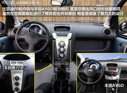 比亞迪F0是目前非常受歡迎的微型車之一,可愛靚麗的造型尤其吸引年輕人的目光,在整個(gè)微型車領(lǐng)域中的銷量也是名列前茅,當(dāng)然這與它親民的售價(jià)也是分不開的,然而它俊俏的外表和可愛的內(nèi)飾卻與豐田旗下的兩款車有著極度的相似。