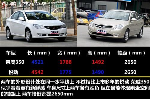 從車身尺寸來看,兩車也是各有千秋,悅動(dòng)在車身長度上領(lǐng)先了21毫米,而榮威350則在寬度和高度上分別超出了13mm和2mm。應(yīng)該說這一兩厘米的差距很難從視覺上察覺,下面我們還要具體介紹他們的空間情況。