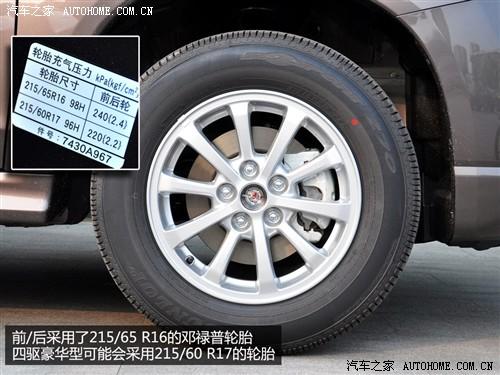 從新車輪胎充氣壓力中文標識上可以看出,2.0四驅(qū)舒適型采用了尺寸為215/65 R16的鄧祿普輪胎,2.0四驅(qū)豪華型很可能會用215/60 R17尺寸的輪胎。