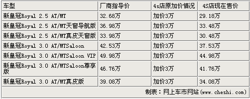 在豪華私家車市場,針對中國消費者偏好“大車”的需求,各大主力車型進行了加長設計,一汽豐田旗下旗艦車型-------日系的皇冠家族也不例外,加長新皇分別搭載了2.5L、3.0L和4.3L引擎,共計9款車型,售價32.68萬-89.95萬元。整體性能、科技含量及豪華感大幅提升。根據(jù)網(wǎng)上車市價格監(jiān)測系統(tǒng)顯示:今日新皇冠再次出現(xiàn)了較高的價格浮動,購買3.0L全系可享受到50000元的優(yōu)惠現(xiàn)金。具體車型行情如下: