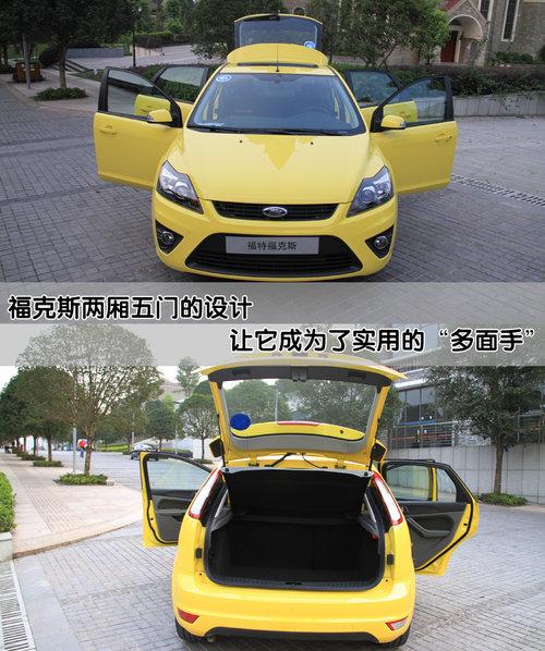 說完了駕駛感受,下面我們來看下2011款?怂2.0L運動型拉風的外形。新車型與老款車型相比并無明顯變化,此次試駕的是一輛顏色非常耀眼的“奔騰黃”也是整個福克斯車系中最亮麗的顏色,這種顏色是兩廂運動版專屬的顏色。