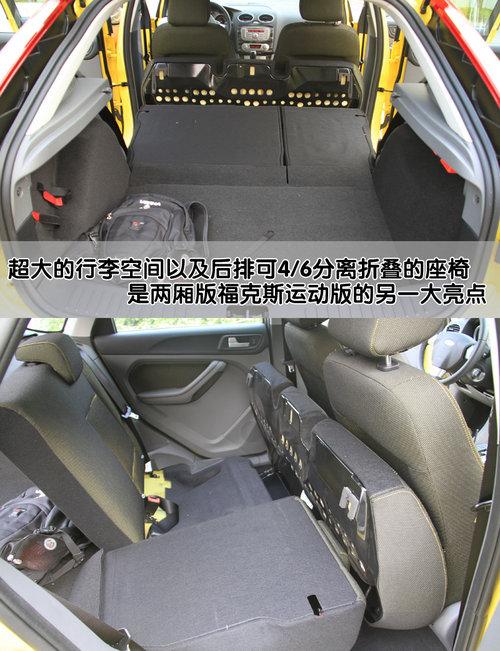 2011款?怂箖蓭\(yùn)動型后排座椅可以6/4分離折疊,將坐墊完全提起后可以完全放平,方便裝載大體積的物品。后排座椅完全放倒后,行李倉容積由385L擴(kuò)展至1245L。