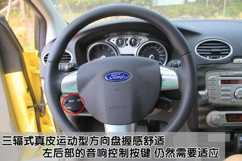 三幅式運(yùn)動型真皮方向盤握感舒適,大小適中。齒輪齒條式/EHPAS 電子液壓動力輔助轉(zhuǎn)向系統(tǒng)讓2011款福克斯兩廂運(yùn)動型擁有較重的手感,這也是運(yùn)動型轎車的特性,但是女性朋友可能就不會喜歡了。