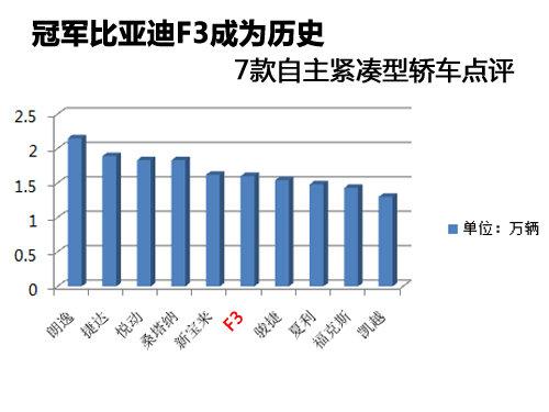 比亞迪F3,比亞迪旗下最為成功的車型,并且穩(wěn)居榜首很長時間,但是就像開始說的,僅僅一個月的時差,讓這款一直穩(wěn)居國內緊湊型轎車榜首的車型突然下滑至第六,畢竟就算下滑,跌落個一兩名的位置還情有可原,但是在其它大多數(shù)品牌并沒有太大的銷量提升的情況下就出現(xiàn)如此狀況,這又說明了什么呢?