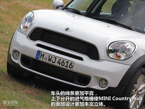 從造型上看,MINICountryman并沒有完全脫離俏皮可愛的設(shè)計路線,雖然車身尺碼一再放大,但車頭上依舊有些可愛的大燈已經(jīng)很明確的展現(xiàn)了MINI的一大設(shè)計特征,車外后視鏡也是100%的MINI風(fēng)格。車頭的線條更加平直,不過你絕不會用硬朗來形容它,上下分開的進(jìn)氣格柵使MINICountryman的面部表情更加豐富立體,即便是充滿動感的CooperS,也不會在引擎蓋上開一個通風(fēng)口,而是比較含蓄的放在了上下進(jìn)氣格柵之間。