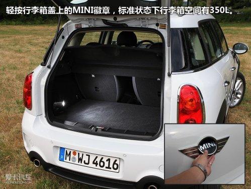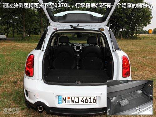 既然廠方說Countryman是最實(shí)用的MINI,那么行李箱空間肯定會成為用戶仔細(xì)考量的一處。輕按行李箱蓋上的MINI徽章,標(biāo)準(zhǔn)狀態(tài)下行李箱空間有350L,通過放倒座椅可擴(kuò)容至1170L,在行李箱底部還有一個(gè)隱藏的儲物格。怎么樣,夠用了吧!