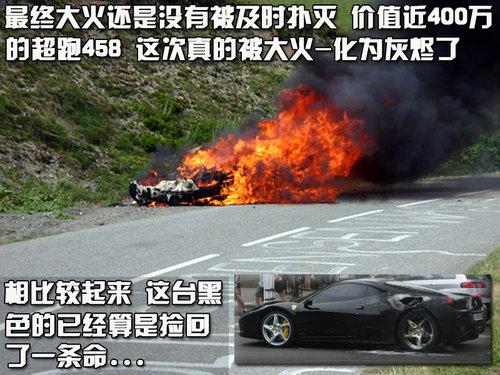 相信大家都還記得前些日子在法國巴黎發(fā)生的一起汽車自燃事件,自燃的主角是一臺全新法拉利458Italia。價值近400萬的一臺超級跑車發(fā)生自燃,讓每一個人都為它捏了一把汗,可想車主更是焦急的上跳下竄。由于及時的救助,那臺黑色的458沒有被完全燒光,至于能否繼續(xù)上路,恐怕是兇多吉少。就在同一周內(nèi),瑞士也發(fā)生了同樣的一幕,一臺紅色的458在郊區(qū)山路旁發(fā)生自燃,這次大火沒有留情,徹底將這臺超跑吞噬一空。