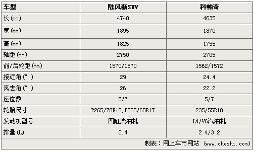 在車身尺寸上,江鈴陸風(fēng)SUV長4740mm、寬1895mm、高1825mm,軸距為2750mm,與科帕奇相比略大一些。在比較重要的越野指標(biāo)上,陸風(fēng)SUV接近角為29度、離去角26度。在動(dòng)力上,陸風(fēng)SUV搭載2.4L四缸柴油機(jī),有5座和7座兩種內(nèi)飾設(shè)計(jì)。
