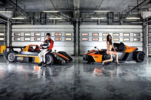 且拋開合法與否的問題不談,光憑X-BOW現(xiàn)在這副尊容,我實在懷疑如果一旦將它開上馬路,駕駛員的生存幾率到底有多高。沒錯,它的樣子實在是酷斃了,幾塊顏色鮮艷而且剪裁夸張的玻璃鋼擋板覆蓋著碳纖維車體,其效果當然如衣不裹體的比基尼美女。也許是為了營造更夸張的視覺沖擊,也許只是為了加深這款產(chǎn)品與摩托車的某中淵源,KTM——這家來自奧地利的摩托車巨匠還特意將前懸架暴露在外,另外車燈也是像老式汽車那樣嵌在車身上的。簡而言之,X-BOW給人的感覺就是一臺準賽車。明白了不?