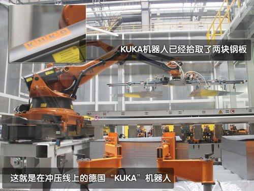一汽大眾的鋼板原料會(huì)來(lái)自德國(guó)、韓國(guó)以及中國(guó),為了防止細(xì)微的灰塵影響沖壓過(guò)程中的質(zhì)量,全部的鋼板原料都是密封的過(guò)程中運(yùn)送到這里的,在制造之前才會(huì)開(kāi)封通過(guò)來(lái)自德國(guó)的KUKA機(jī)械手放進(jìn)沖壓機(jī)床進(jìn)行沖壓。機(jī)床屬于一機(jī)雙模,一起沖壓就會(huì)出來(lái)兩個(gè)配件。沖壓機(jī)床的力量達(dá)到了2000噸以上,配件在瞬間就會(huì)形成整體并保證原始的強(qiáng)度。