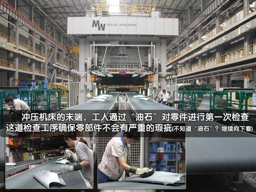 在生產(chǎn)線的中間是工作人員的監(jiān)控區(qū)域,工作人員可以通過(guò)監(jiān)視器看到整個(gè)沖壓車間的的生產(chǎn)狀況。而在每一個(gè)沖壓機(jī)床的末端,工人會(huì)對(duì)每一個(gè)沖壓出來(lái)的配件進(jìn)行粗檢。然后由一汽大眾的AUDIT評(píng)審專家,對(duì)配件進(jìn)行“比客戶更加苛刻”的標(biāo)準(zhǔn),去檢查配件的公益標(biāo)準(zhǔn)。