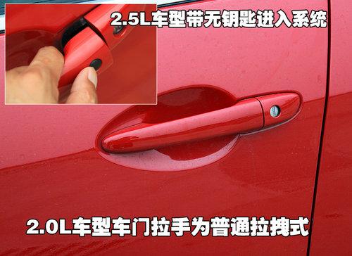 與車身同色的車外門把手開啟車門時(shí)力度適中,周圍與車門板金接縫均勻,開啟的過(guò)程中無(wú)松垮的感覺(jué)。不過(guò)這款車并沒(méi)有采用智能鑰匙系統(tǒng),消費(fèi)者要進(jìn)入愛車只能通過(guò)鑰匙開啟車門。